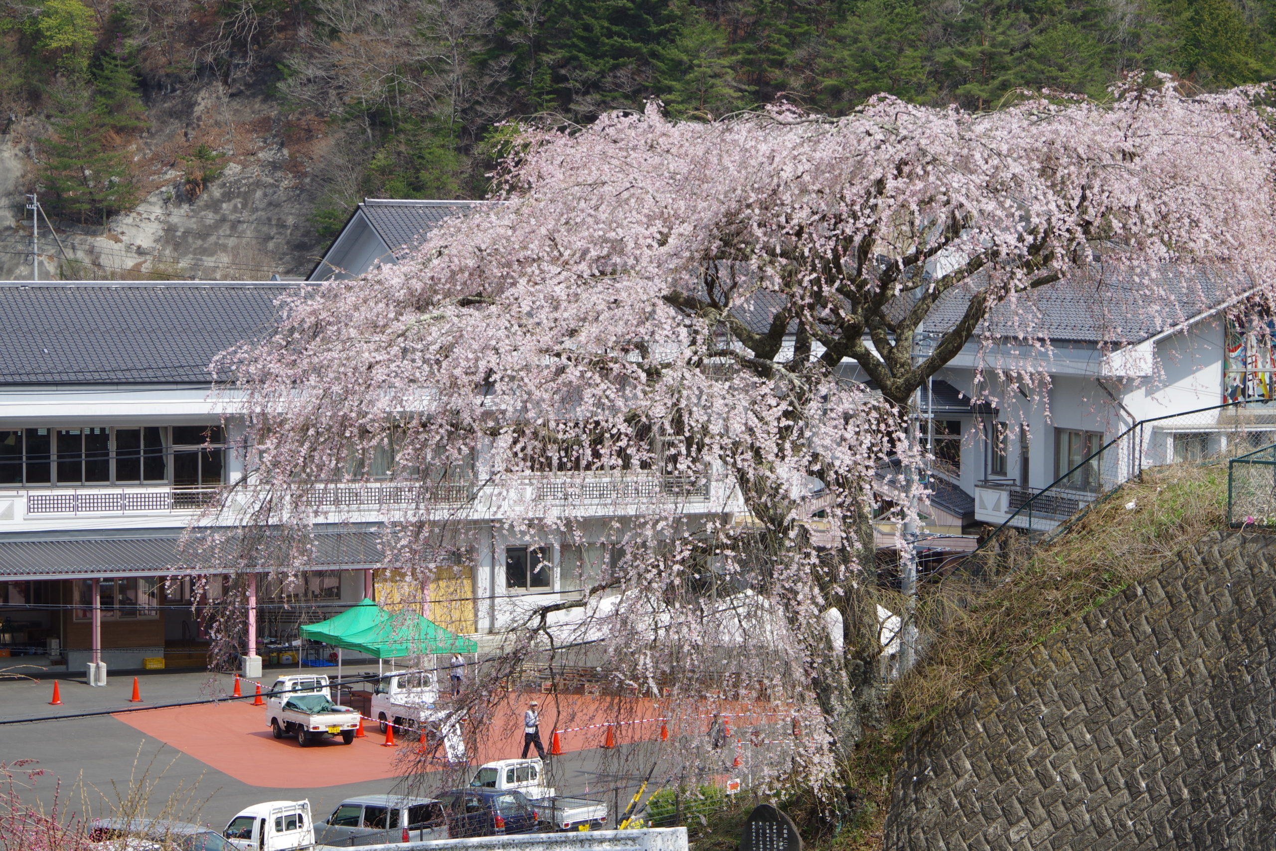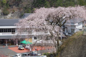 清中プラザ(旧清内路中学校)の道向かいに咲く桜。