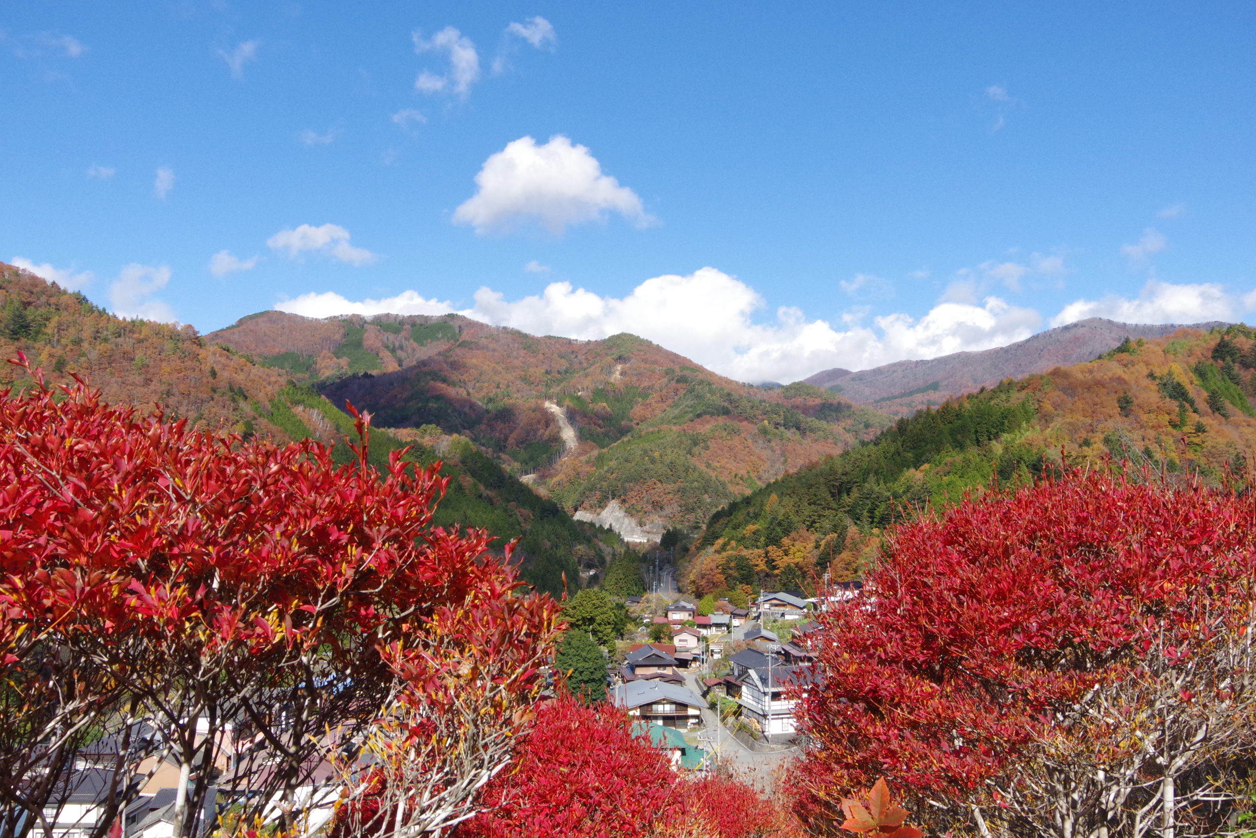 秋にはドウダンツツジの紅葉が見られる。